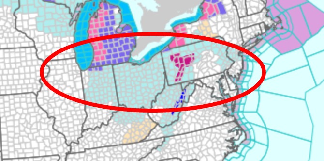 The widespread advisory covers a multi-state region from central Indiana through western and northern Ohio and into central and northern Pennsylvania, including both urban and rural communities. According to NWS statements, wind