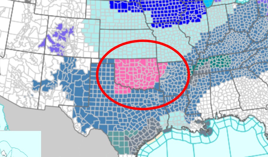 Up to a Foot of Snow and Heavy Ice Expected Areas colored pink represent the counties under an increased Winter Storm Warning (Source: weather.gov)
